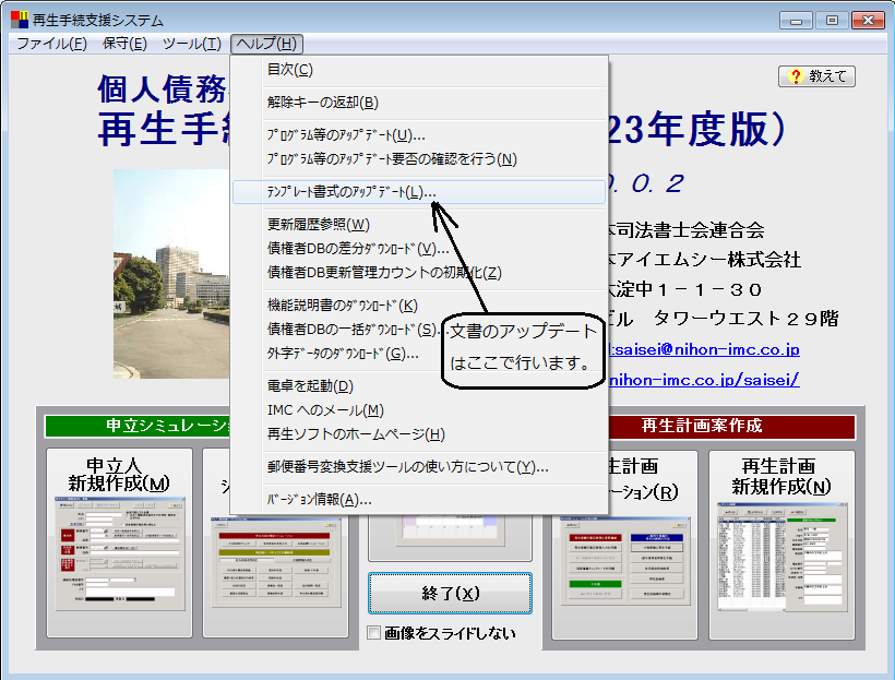 ①文書の更新は通常、[ヘルプ]メニューの[テンプレート書