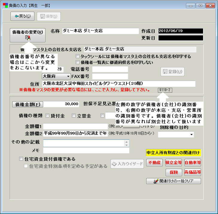 【質問】 同じ債権者(ただし住所や部署名は別)について債権者番号を同一にして枝番をつけることができません。どうすればよいのでしょうか?(2012-6-18)