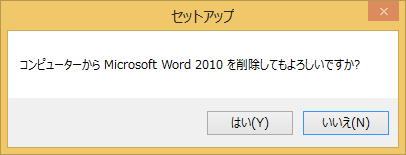| アンインストールの確認ダイアログが表示されますので、【はい】をクリックします。Officeの場合は、Microsoft Officeに含まれるソフトすべてをアンインストールします。