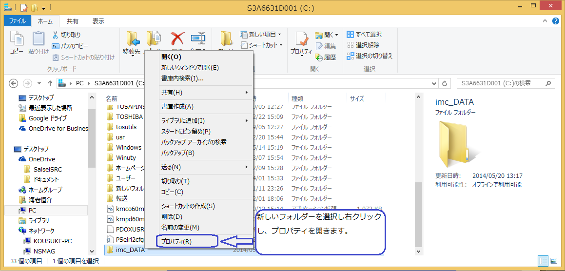 【プロパティ】を選択します。