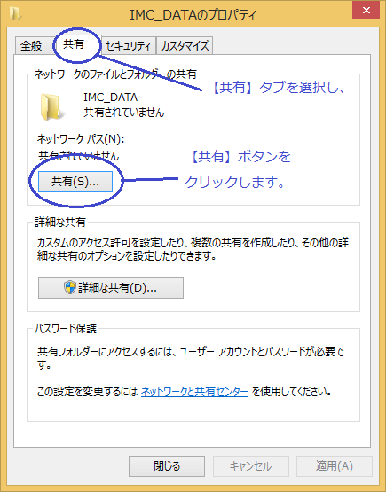 【共有タブ】を選択し、【共有ボタンをクリックします。】