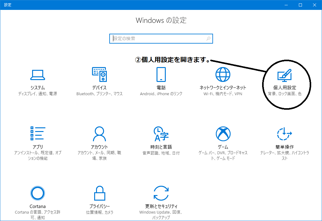 「個人用設定」をクリックしますします。